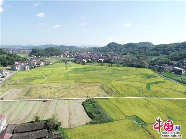 原標(biāo)題:湖南新邵:早稻進(jìn)入全面收割階段 田園如詩如畫