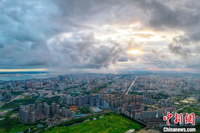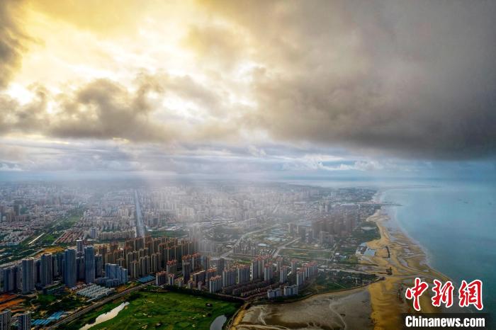 圖為陽(yáng)光穿過(guò)云層照耀北海市城區(qū)?!⌒旖B榮 攝