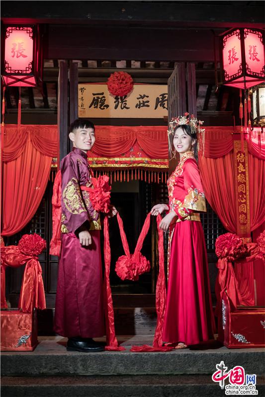 洞房花燭夜,人生樂事,恰逢七夕,張廳夜囍。張廳迎囍,廳堂結(jié)紅彩?;ê迷聢A,洞房花燭,伊人蛾眉皓齒,融入千年文化傳承的夜色時(shí)光。水鄉(xiāng)傳統(tǒng)婚典,見證著獨(dú)屬于古韻江南的浪漫。