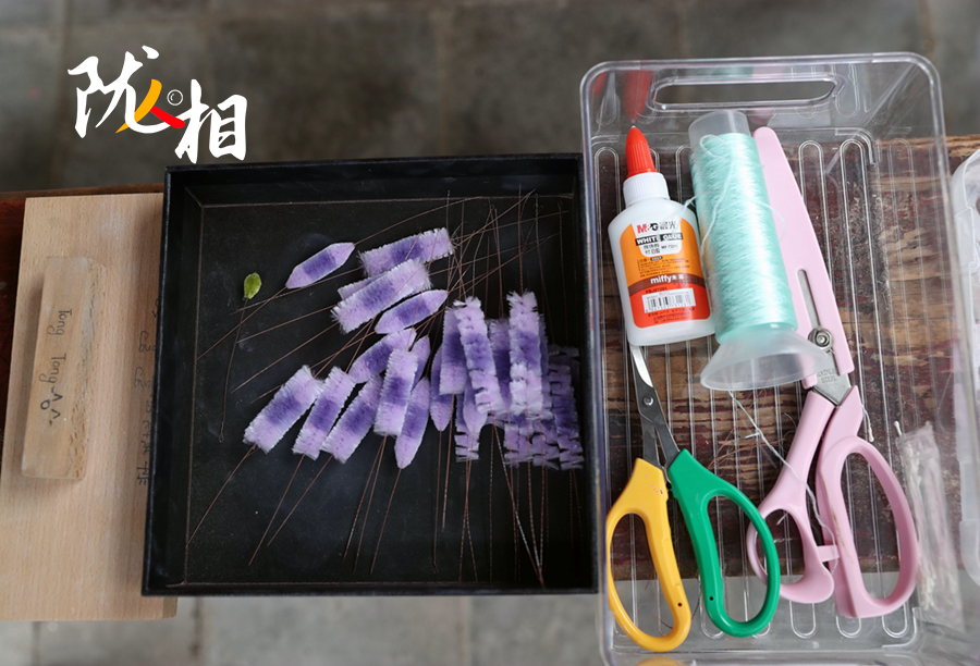 排線、栓銅絲、裁剪寬度、勾挑搓絲、打尖、傳花,每一個(gè)制作過(guò)程都需要耐心,制作一朵簪花少說(shuō)也要一周時(shí)間。對(duì)于宗怡彤來(lái)說(shuō),學(xué)會(huì)簪花,也就學(xué)會(huì)了靜下心來(lái)面對(duì)一切,在沉浸的時(shí)光,心無(wú)旁騖,才能享受最終的賞心悅目。