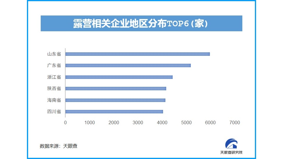 人們被疫情壓抑了的旅游需求,在露營市場得到釋放。根據(jù)天眼查大數(shù)據(jù),我國目前已有超過6.6萬家與露營相關的企業(yè),近3年露營相關企業(yè)注冊總量增長迅猛。在地域分布上,山東的露營相關企業(yè)數(shù)量最多,近6000家。廣東、浙江、陜西、海南、四川等緊隨其后,均超過4000家。