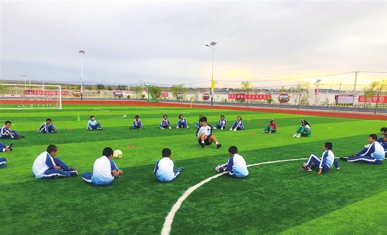 足球教練指導(dǎo)古浪縣富民新村小學(xué)球員。