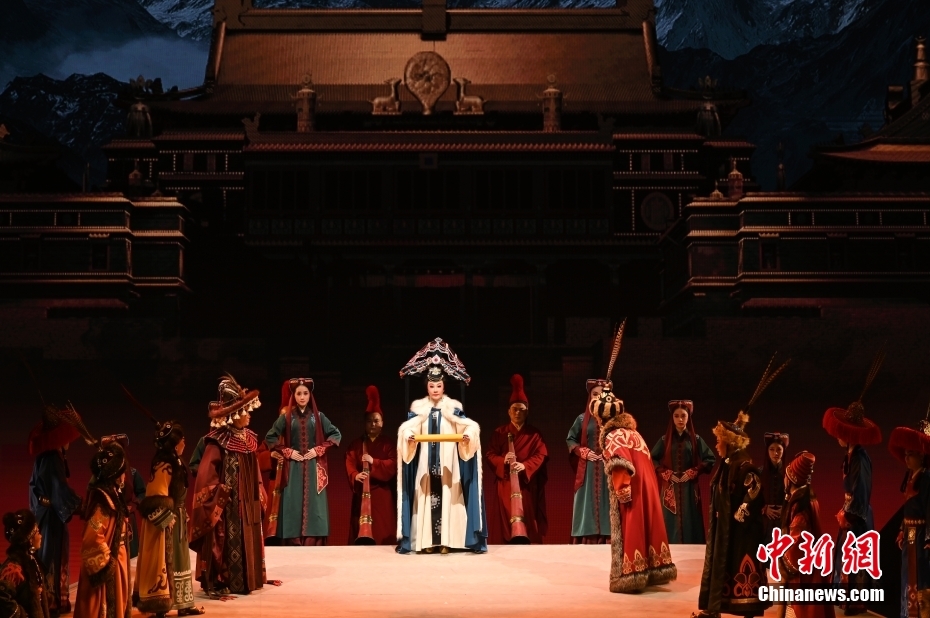 10月11日晚,大型新編歷史粵劇《文成公主》在廣東廣州大劇院首演。該劇以文成公主和親進藏的歷史事件為依據創(chuàng)作,講述了文成公主堅守吐蕃四十年,促進了吐蕃經濟、文化的發(fā)展,加強了漢藏人民的友好關系。中新社記者 陳楚紅 攝