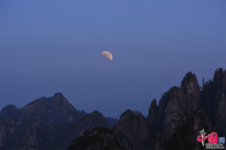 原標(biāo)題:“黃山之巔”驚現(xiàn)月全食奇觀 可謂美輪美奐(圖)