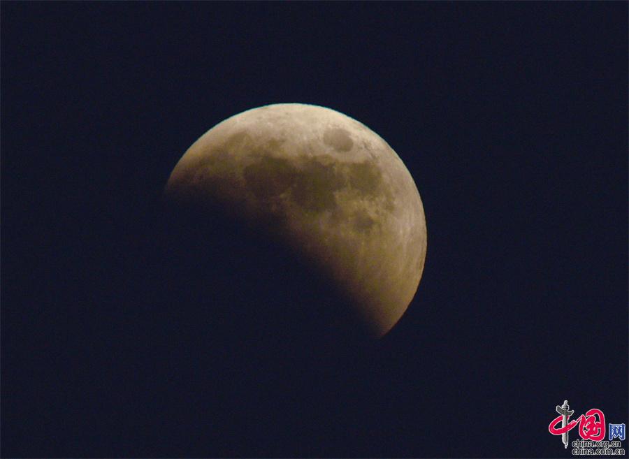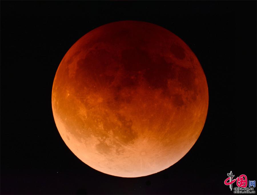 據(jù)了解,月亮初升時(shí)分,就缺了一塊,略顯紅色;隨著月亮的升高,月缺越來(lái)越嚴(yán)重也變得越來(lái)越紅,最后變成了一個(gè)完整的紅月亮,被稱(chēng)為“血月”。