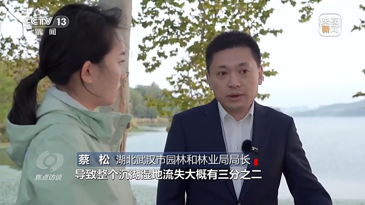 湖北武漢市園林和林業(yè)局局長(zhǎng) 蔡松:圍湖造田、養(yǎng)魚(yú),導(dǎo)致整個(gè)沉湖濕地流失大概有三分之二,比較嚴(yán)重。從2013年開(kāi)始,武漢市加大對(duì)沉湖濕地的整治力度,通過(guò)生態(tài)補(bǔ)償?shù)姆绞剑麄€(gè)退漁還濕達(dá)到了7.8萬(wàn)畝。