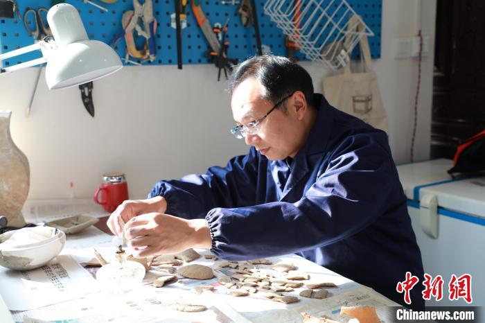 在工作站內(nèi),信陽(yáng)市平橋區(qū)城陽(yáng)城址管委會(huì)副主任劉勇也是修復(fù)組成員之一,今年也是他在城陽(yáng)城工作的第18個(gè)年頭。