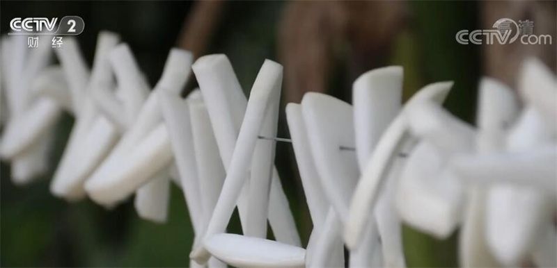 四川省瀘州市納溪區(qū)豐樂鎮(zhèn)村民 李焱梅:切得時(shí)候是有規(guī)矩的,先切成片,然后切成一條一條的斜杠,牽起來一片就是一條。