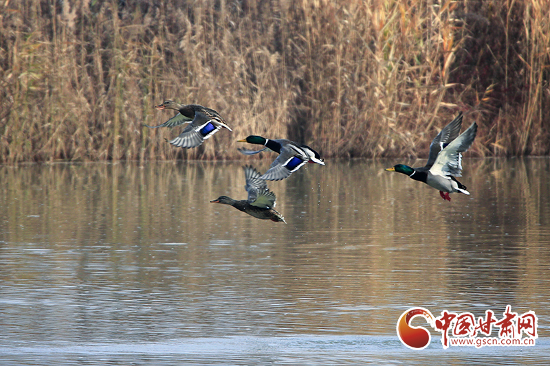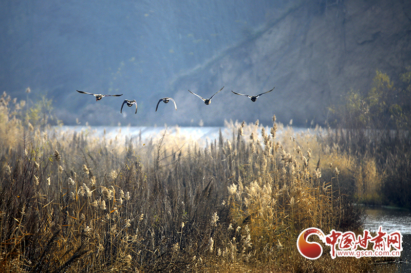 冬日的平?jīng)鍪谐缧趴h,無人機鏡頭下的唐帽山山巒疊嶂、俊秀奇威,高大的樹木直插云霄,在云霧繚繞中宛若仙境;汭水河畔,成群的綠頭鴨時而佇立枝頭,時而輕舞飛翔,時而戲水覓食。