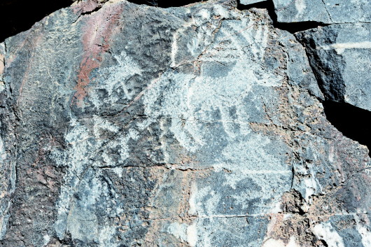 肅北縣大黑溝巖畫是全國重點文物保護單位,巖畫形成時間初步斷定在春秋、戰(zhàn)國至西漢時期,位于肅北縣城東約40公里處的大黑溝。巖畫共有34組,圖案190多幅,零亂分布在3.5公里長的山溝中,畫面內容多為射獵、放牧、練武、乘馬作戰(zhàn)等場景和北山羊、野牛、野駱駝等動物,畫面表現形式多以凹刻和凸刻,巖畫大多刻在避風向陽的陡峭花崗巖和石灰石上。