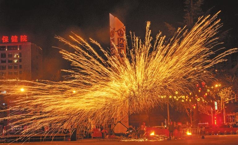 1月24日至26日晚間,河南省洛陽市向陽打鐵花藝術(shù)團(tuán)在天水秦州萬達(dá)廣場1號(hào)門表演千年絕技“打鐵花”,為群眾奉獻(xiàn)了一場震撼的視覺盛宴。