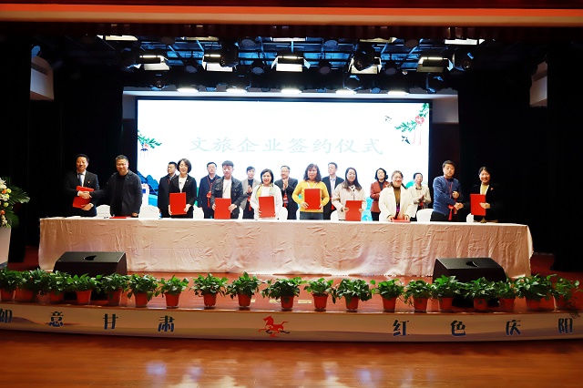 專題推介會上,由慶陽市文體廣電和旅游局黨組書記、局長郭麗君全面推介了慶陽文化旅游資源,慶陽旅游百事通國際旅行社總經(jīng)理毛永吉重點推介了慶陽旅游精品線路;重慶山水國旅、陜西中國旅行社等川、渝、陜、青、寧等?。▍^(qū)、市)旅行社與慶陽公共交通集團(tuán)旅行社、慶陽文化旅游投資集團(tuán)北豳風(fēng)旅行社等20家旅行社,相互簽訂了“引客入甘肅游慶陽”客源輸送及慶陽旅游產(chǎn)品聯(lián)合開發(fā)合作協(xié)議。推介環(huán)節(jié)還組織進(jìn)行了嗩吶演奏《沸騰的黃土地》、慶陽民歌《送吉祥》、南梁說唱傳統(tǒng)劇目《紅鳳先下山》以及民歌聯(lián)唱等極富隴東特色的文藝表演。推介會前,與會嘉賓還一起觀看了慶陽文旅形象及招商項目圖片展、非遺文創(chuàng)產(chǎn)品展。甘肅省文旅廳有關(guān)處室和省內(nèi)外旅行商、文旅企業(yè)、媒體記者代表,慶城縣政府、慶陽市重點景區(qū)、文旅企業(yè)等相關(guān)負(fù)責(zé)人共150余人參加。