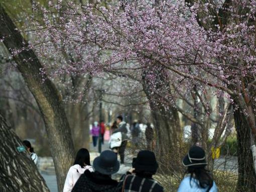 北京:山桃花盛開玉淵潭