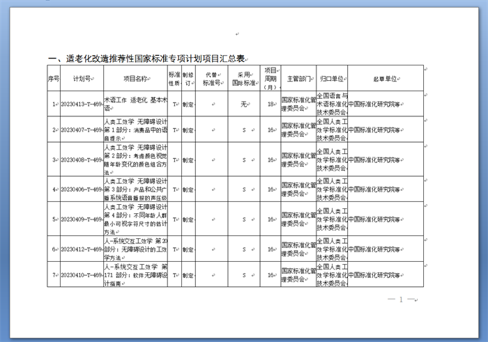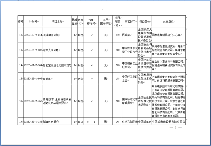 國家標準化管理委員會(以下簡稱國家標準委)發(fā)布《關(guān)于下達適老化改造推薦性國家標準專項計劃及相關(guān)標準外文版計劃的通知》(以下簡稱《通知》)。《通知》稱,為實施積極應(yīng)對人口老齡化國家戰(zhàn)略,對照全國政協(xié)關(guān)于加快推進社會適老化改造的民主監(jiān)督事項,經(jīng)研究,國家標準化管理委員會決定下達適老化改造推薦性國家標準專項計劃及相關(guān)標準外文版計劃(附后)。本批適老化改造領(lǐng)域推薦性國家標準專項計劃共計39項,其中制定35項、修訂4項。