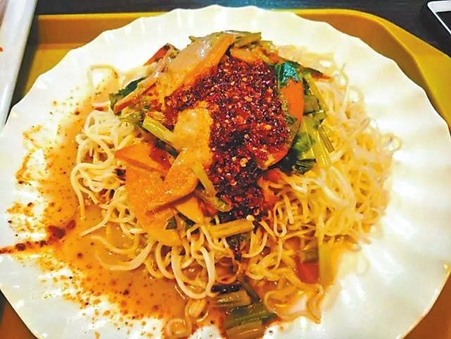 一碗標(biāo)準(zhǔn)的涼州涼面,必須是滿滿一碗,總要冒高點(diǎn)才夠分量。鹵汁分葷、素兩種。鹵子里有豬肉抑或牛肉片、土豆塊、豆腐、豆角、胡蘿卜、干白菜等,攪兩筷子,每一根面條都蘸上了鹵汁的感覺,看起來就非常有食欲。食客們埋頭呼嚕呼嚕開吃,相當(dāng)過癮。雖然面是涼的,但鹵是熱的,完全不需要擔(dān)心會燙嘴,面條很筋道,味道很濃郁!傳說左宗棠多年征戰(zhàn),戰(zhàn)事吃緊,為解決將士吃飯方便的問題,便想出冷面熱鹵的方法。吃涼州涼面,吃的是一種酸辣風(fēng)味,更是一種對小城難以割舍的情愫。