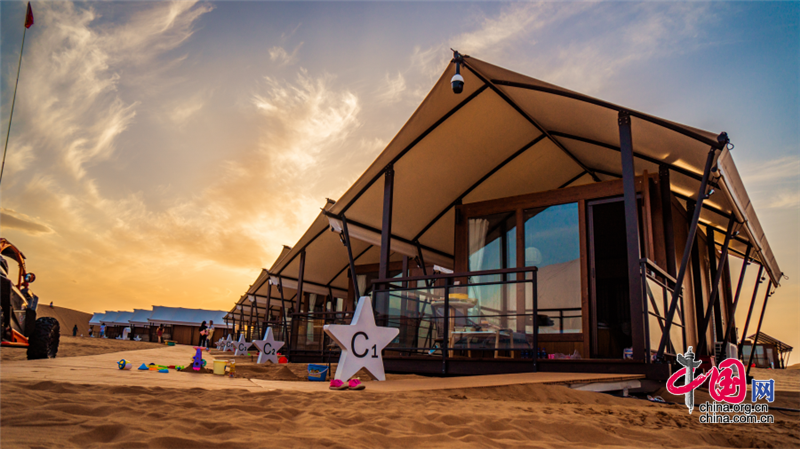 沙坡頭旅游區(qū)依托良好的生態(tài)資源,打造了國內首個以沙漠觀星為主題打造的酒店——星星酒店,在蒼茫遼闊的沙漠之中,這座造型獨特的酒店仿佛星星一般,閃爍其中。