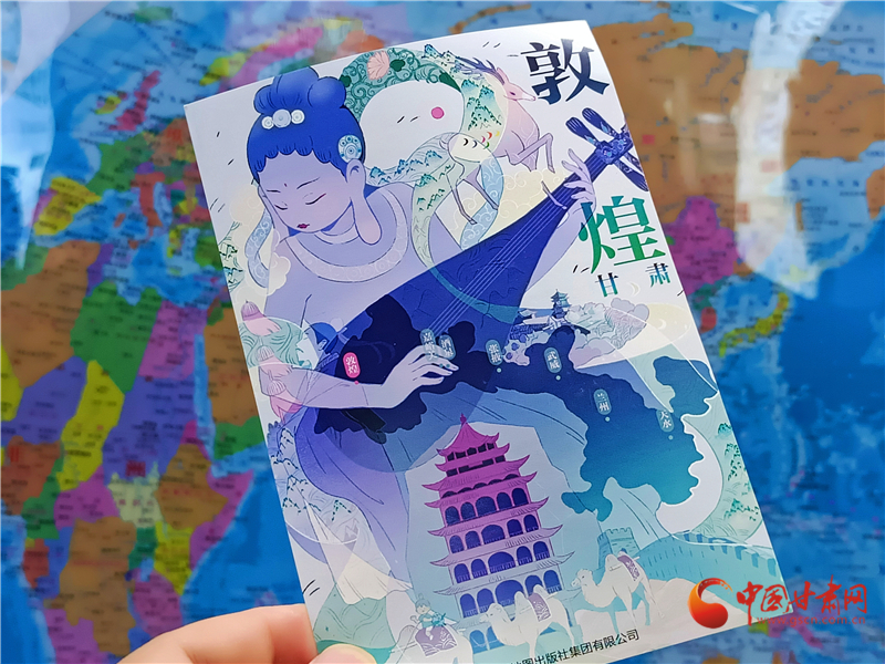 中國地圖出版社新媒體編輯劉堯表示,這是他們特意為這次來敦煌參加數(shù)字出版博覽會設(shè)計(jì)的。敦煌是飛天的故鄉(xiāng),一張小卡片不僅有飛天的問候,更有甘肅的廣袤。