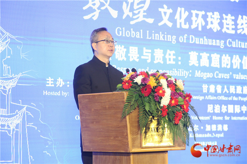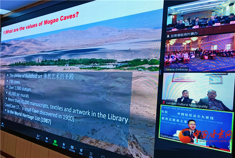 中國(guó)甘肅網(wǎng)12月4日訊(西北角·中國(guó)甘肅網(wǎng)記者 宋芳科 )12月4日,“敦煌文化環(huán)球連線——走進(jìn)尼泊爾”在蘭州、敦煌、尼泊爾三地線上線下同步舉辦。中國(guó)駐尼泊爾大使陳松、尼泊爾教育與科技部部秘普拉米拉·黛維·巴吉拉恰利亞,酒泉市委常委、敦煌市委書記石琳、尼泊爾藍(lán)毗尼文化市市長(zhǎng)薩魯丁·穆薩爾曼等應(yīng)邀出席活動(dòng)并講話,活動(dòng)由甘肅省政府外事辦主任張寶軍主持。