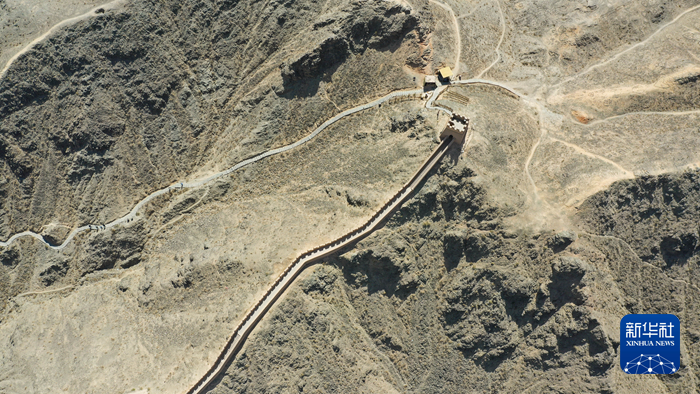 這是5月17日在甘肅省嘉峪關(guān)市拍攝的懸壁長城(無人機照片)。新華社記者 陳斌 攝