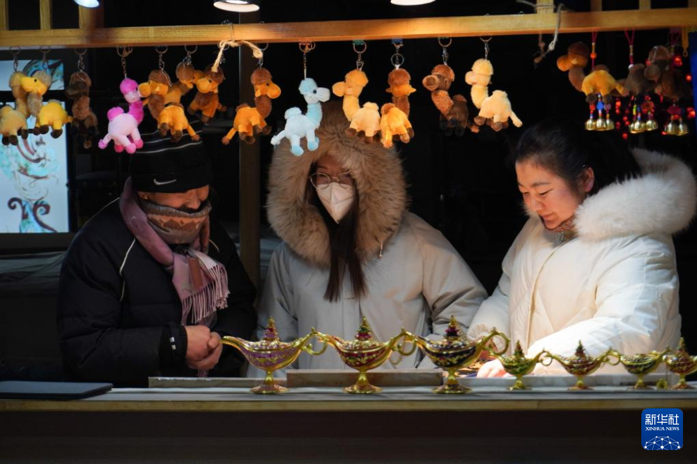 1月21日,在甘肅省敦煌市的敦煌夜市,游客選購紀(jì)念品。新華社記者 馬希平 攝