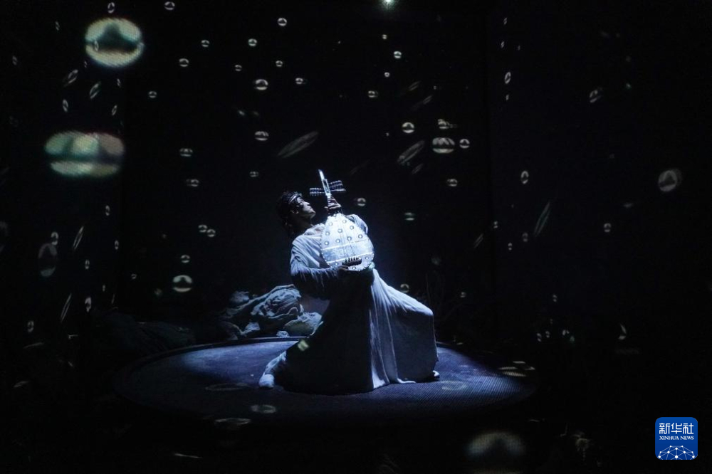 1月21日,在甘肅省敦煌市,演員在大型洞窟式沉浸體驗劇《樂動敦煌》中表演。新華社記者 馬希平 攝
