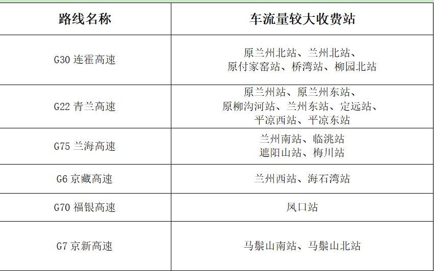 (一)高速公路重點路段。以蘭州為中心的放射線及其聯(lián)絡(luò)線為重點。如:G30連霍高速,G22青蘭高速,G6京藏高速,G70福銀高速,G75蘭海高速,S1機(jī)場高速等路段及相關(guān)收費站、服務(wù)區(qū)。