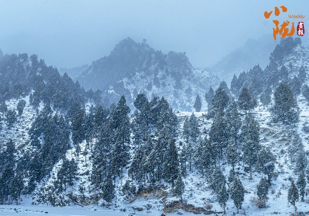 溝內(nèi)群山環(huán)抱,峰巒疊嶂,郁郁蔥蔥的蒼茫林海,與皚皚白雪勾勒出一幅壯美畫卷。