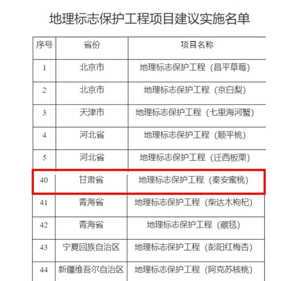 秦安蜜桃上榜2024年國家級地理標(biāo)志保護(hù)工程實施名單