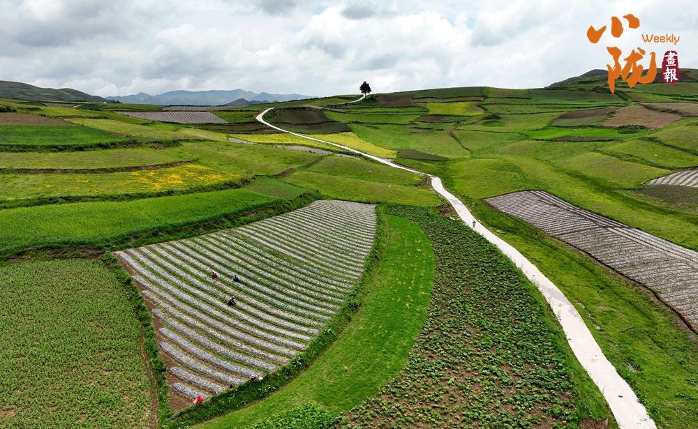 從空中俯瞰,阡陌縱橫與遠處連綿起伏的青山,錯落有致的民居交相呼應,勾勒出一幅美麗的“田園畫卷”。