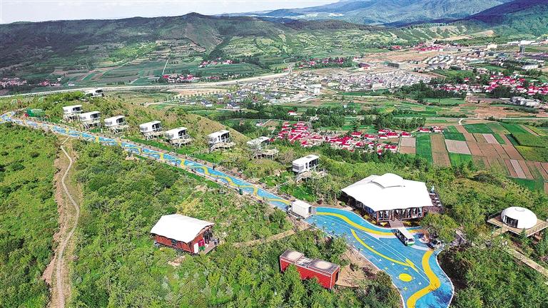 位于松鳴鎮(zhèn)吊灘村、中心村和新莊鄉(xiāng)中良村交會(huì)地帶的大樺梁星語云端旅游景區(qū)占地200公頃,是沿太子山旅游大通道和政段一個(gè)以民宿集群為核心的綜合性景區(qū),目前已建成包括10個(gè)太空艙微宿、10個(gè)野奢帳篷木屋生態(tài)民宿和10個(gè)“星月居”科幻主題民宿。此外,景區(qū)還提供多樣化的住宿形式,如帳篷營地、房車營地、自由露營地等,還有多元化的餐飲服務(wù)。站在大樺梁頂放眼望去,藍(lán)天白云下綠意延伸,遠(yuǎn)方的太子雪山銀光閃耀,松鳴巖、法臺(tái)山景區(qū)和特色文旅小鎮(zhèn)錯(cuò)落有致,而游客和車輛就像是灑落其間的玉珠,凝聚著這里的“人氣”。