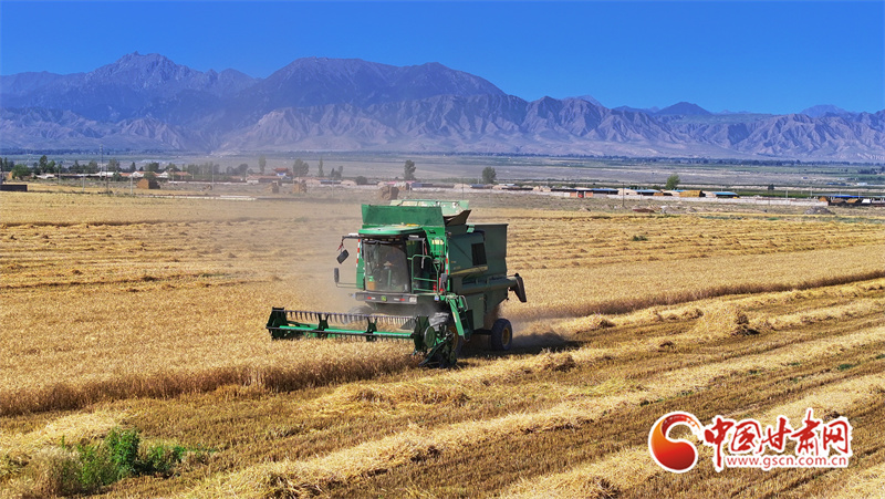 眼下,位于祁連山下的民樂(lè)縣南古鎮(zhèn)毛城村800畝連片小麥種植基地上,機(jī)聲隆隆,農(nóng)機(jī)手們駕駛收割機(jī)穿梭往返麥田之中搶收小麥,一派忙碌的豐收景象。近期,隨著民樂(lè)縣沿祁連山冷涼山區(qū)小麥迎來(lái)成熟季,民樂(lè)縣種植的26萬(wàn)畝小麥進(jìn)入了繁忙的收割期。