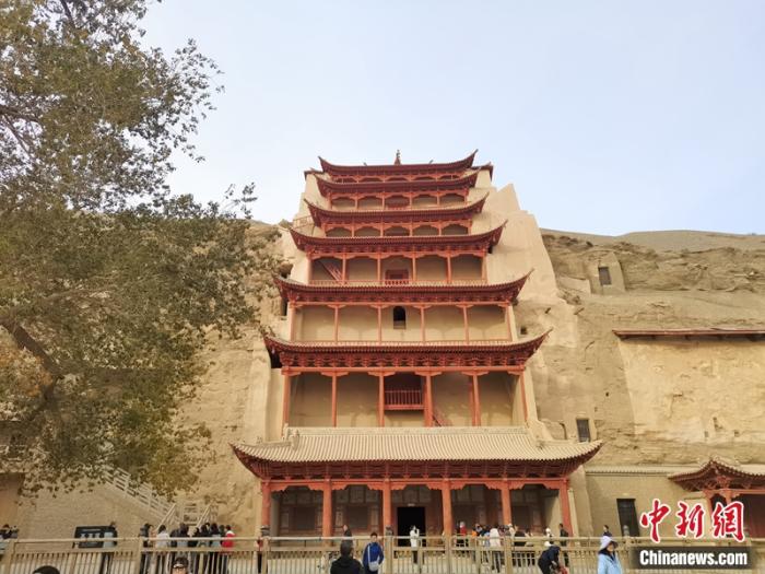 人們來到敦煌莫高窟參觀。中新網(wǎng)記者 上官云 攝