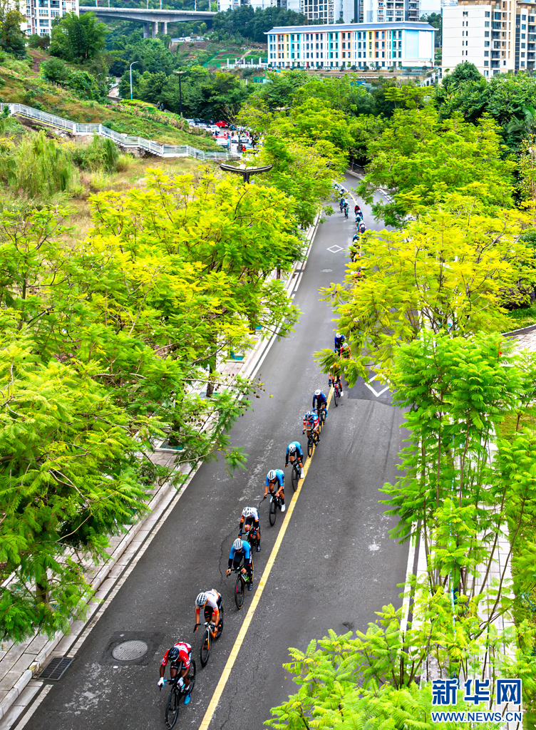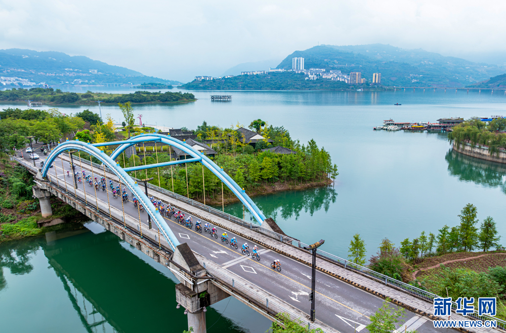 2024環(huán)昭通國際公路自行車賽(綏江—水富賽段)比賽現(xiàn)場(11月8日攝)。新華網(wǎng)發(fā)(曾三東 攝)