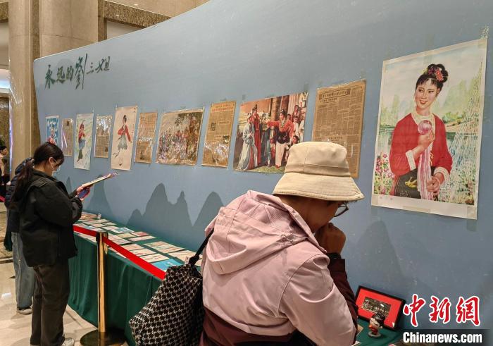 “永遠(yuǎn)的劉三姐”小型展覽18日晚也在長安大戲院展出,各種版本《劉三姐》的劇本、歌本、歌片、節(jié)目單,與劉三姐相關(guān)的各種海報、唱片、郵品和老報紙等展品吸引觀眾紛紛駐足。