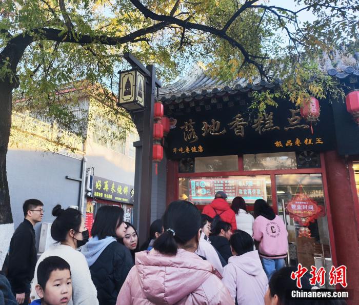 漁陽(yáng)古街上,游客正排隊(duì)購(gòu)買一家“網(wǎng)紅”棗糕。劉越 攝