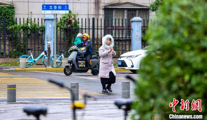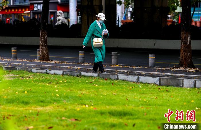 11月25日,市民在街頭出行。當(dāng)日,武漢受寒潮天氣影響,氣溫下降明顯。武漢市氣象臺24日18時27分發(fā)布寒潮藍(lán)色預(yù)警信號,受較強(qiáng)冷空氣影響,預(yù)計24日至26日,武漢最低氣溫降幅達(dá)7℃~9℃。中新社記者 張暢 攝