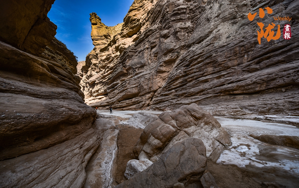 峽谷悠長,有的地方寬敞,有凹進(jìn)去的平臺(tái),有的地方卻是“一線天”,非常的狹窄,透露出深邃的神秘感。