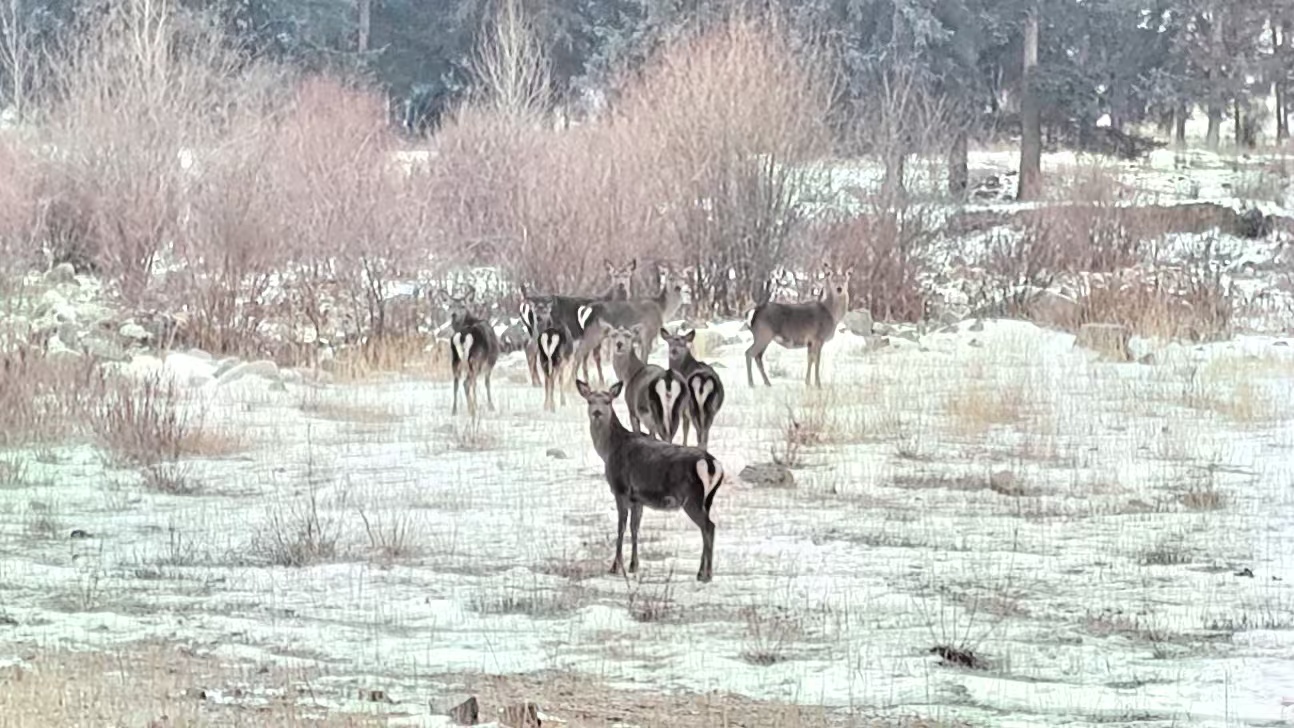 近日,甘肅祁連山國(guó)家級(jí)自然保護(hù)區(qū)管護(hù)中心哈溪自然保護(hù)站華山資源管護(hù)站管護(hù)人員在野外巡護(hù)過程中,在轄區(qū)海拔2900米的山區(qū)內(nèi),偶遇一群正在覓食的馬鹿,立刻用手中的巡護(hù)終端拍攝到了這珍貴的畫面。
