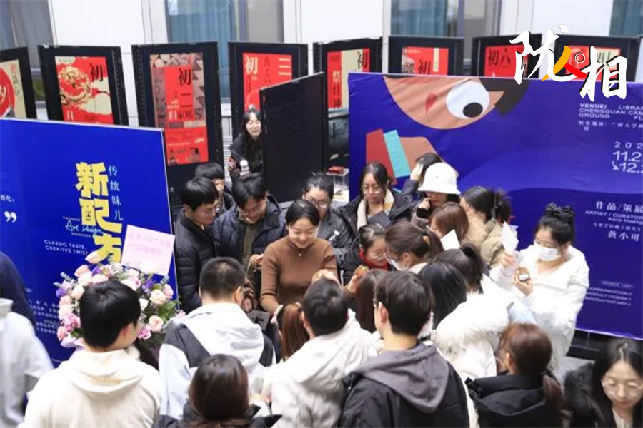 整體被搭建成“S”形的展區(qū),借鑒了博物館的陳展布局,讓參觀者不必走回頭路;展區(qū)第二部分陳列著各種文創(chuàng)玩偶的展臺(tái)赫然入目,讓人驚喜連連;展區(qū)外圍的留言墻,不僅有備好的A4紙,還貼心地粘上了馬克筆,方便觀眾留言……來(lái)參觀的人,即便對(duì)藝術(shù)不敏感也能被設(shè)計(jì)者的細(xì)心和創(chuàng)意輕松打動(dòng)。
