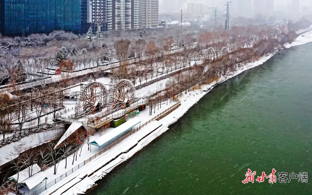 蘭州黃河兩岸銀裝素裹,美不勝收。新甘肅·甘肅日報記者 孟捷