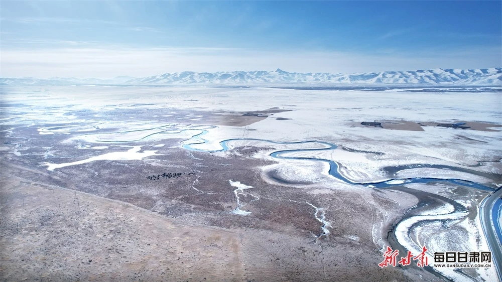 雪后的阿萬倉濕地遼闊壯美。新甘肅·每日甘肅網(wǎng)通訊員 劉瑞祥