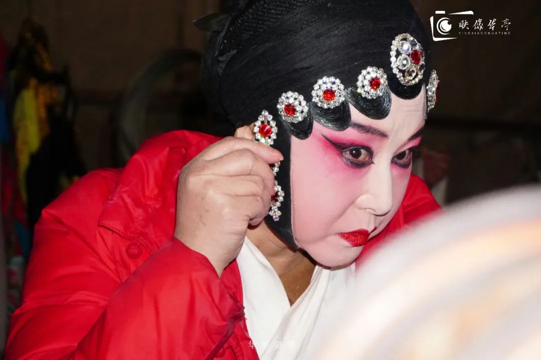 演員們或對鏡描眉,或整理戲服