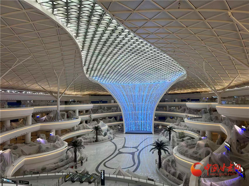 目前,口岸查驗設(shè)施基本完成;綜合交通中心工程土建安裝、裝飾裝修工程全部完成,容納3520個停車位;信息大樓工程核心機房設(shè)備、弱電系統(tǒng)、裝修全部完成;機場業(yè)務(wù)用房、安檢護(hù)衛(wèi)用房、值班宿舍、國際國內(nèi)貨運庫等附屬工程全面建成;綜合管廊、場區(qū)道路全線貫通;如意廣場、主進(jìn)場道路等場區(qū)綠化苗木基本栽植完成。