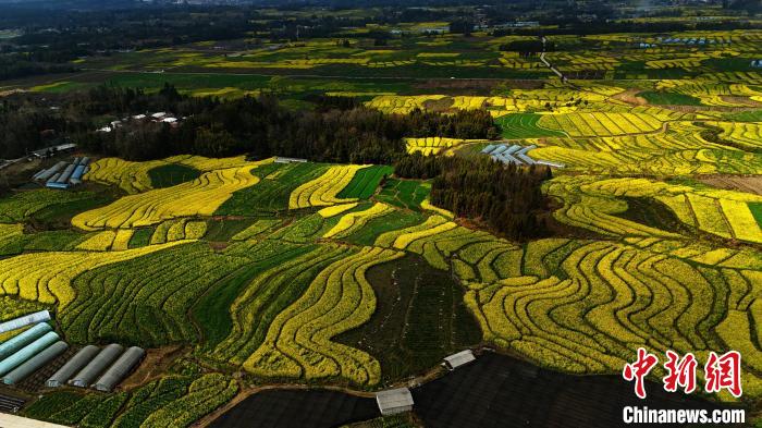 近日,云南省騰沖市界頭鎮(zhèn)成片的油菜花盛開,吸引不少游客前來觀光。金黃的油菜花海與遠(yuǎn)處白墻黛瓦的村落相映成趣,共同繪就一幅寫意的水墨畫。圖為大片油菜花盛開。趙輝 攝