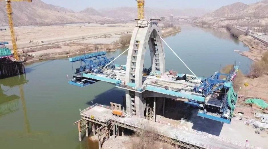 近日,蘭州黃河生態(tài)旅游開發(fā)集團所屬交發(fā)建昌通公司負責承建的什川黃河大橋項目4號墩塔首對斜拉索成功安裝。斜拉索安裝是斜拉橋施工的重要環(huán)節(jié),標志著黃河蘭州段首座雙肢“梨”型塔身結構的雙塔斜拉橋懸臂現澆箱梁由無索區(qū)變成有索區(qū),全面進入斜拉索安裝階段,為后續(xù)施工奠定了基礎。據了解,什川黃河大橋項目力爭年底實現建成通車。 奔流新聞·蘭州晨報記者張艾萍攝