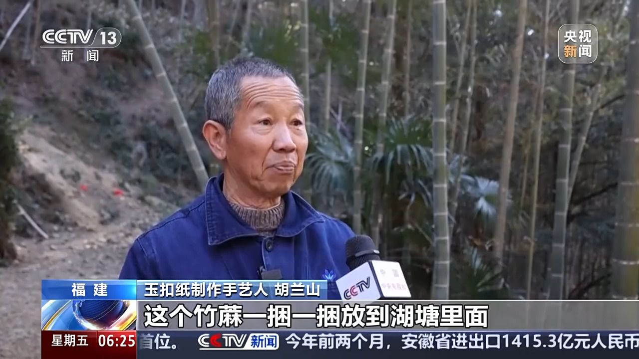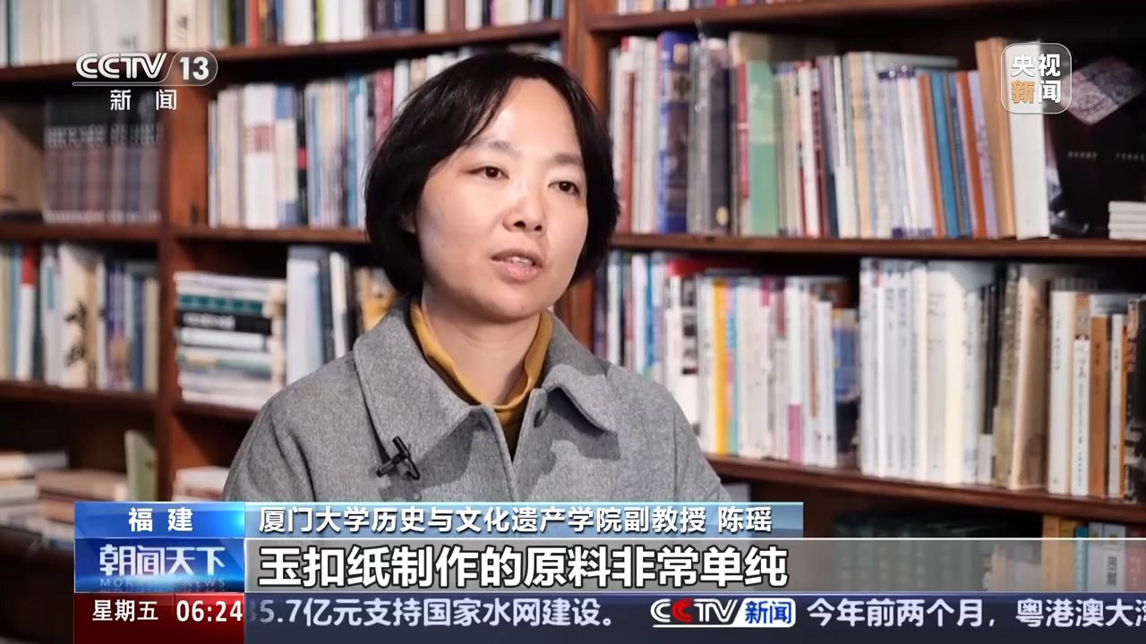 廈門大學(xué)歷史與文化遺產(chǎn)學(xué)院副教授 陳瑤:玉扣紙制作的原料非常單純。就是三種,一個(gè)是竹子嫩竹,第二個(gè)是石灰,第三個(gè)就是清潔的山泉水。基本上是純靠人工來進(jìn)行品質(zhì)的管控。