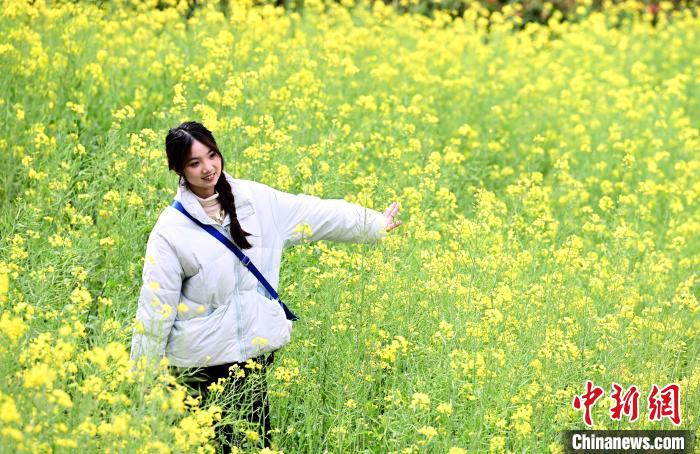 3月16日,游客在公園觀賞彩色油菜花。春日,福州花海公園魯冰花、小蒼蘭、油菜花等鮮花盛放,吸引了許多民眾前來漫步賞花,享受春天美好時光。中新社記者 張斌 攝