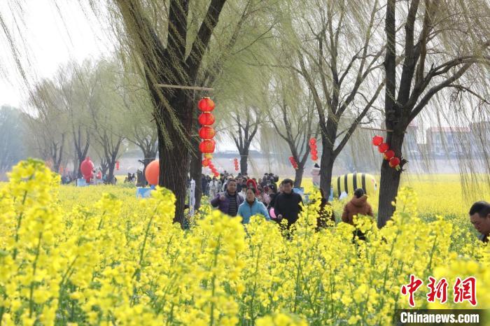 圖為彭澤縣棉船鎮(zhèn)萬(wàn)畝油菜花進(jìn)入盛花期,吸引眾多游客前來(lái)踏青賞花。彭琴 攝