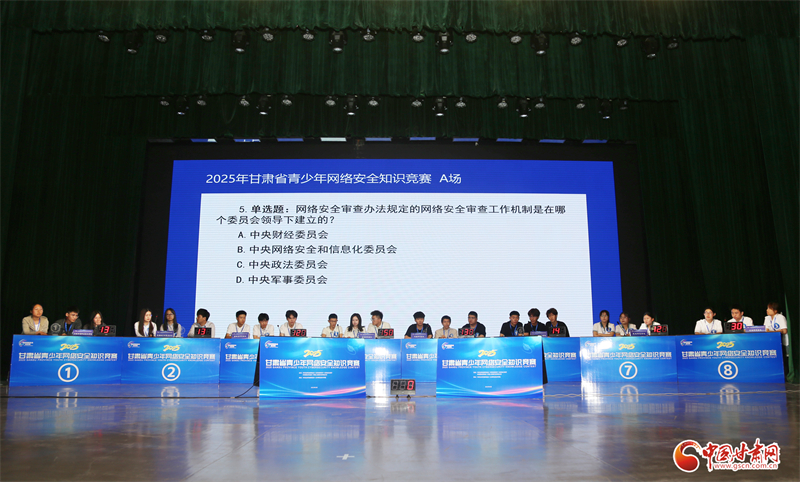 中國(guó)甘肅網(wǎng)5月13日訊(西北角·中國(guó)甘肅網(wǎng)記者 程?。?月13日上午,2025年甘肅省青少年網(wǎng)絡(luò)安全知識(shí)競(jìng)賽在蘭州拉開帷幕。來(lái)自全省14個(gè)市(州)、蘭州新區(qū)以及36所高校、5家銀行的56支代表隊(duì)齊聚蘭州職業(yè)技術(shù)學(xué)院,共同開啟這場(chǎng)精彩紛呈的網(wǎng)絡(luò)安全知識(shí)盛宴。