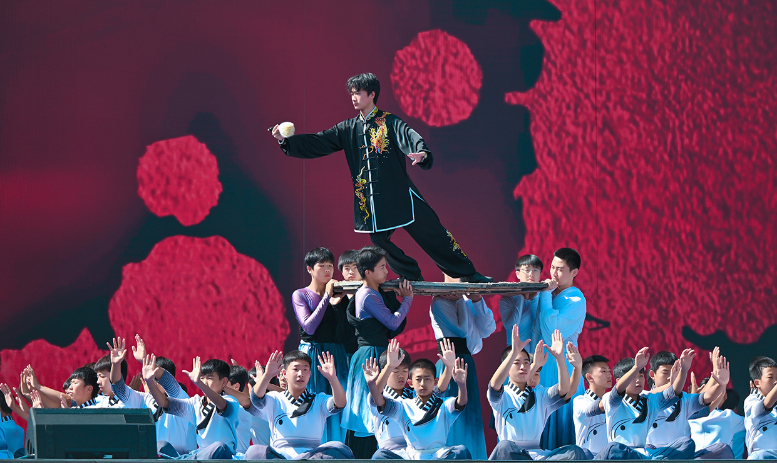 活動伊始,開場片《歡迎乘坐崆峒號》以“環(huán)西部火車游·崆峒號”平涼旅游專列為靈感,通過跨時空對話串聯(lián)崆峒山古今脈絡,拉開活動序幕?,F(xiàn)場,街舞與崆峒武術團體合作的《武韻崆峒》展現(xiàn)武術與現(xiàn)代肢體藝術新生機;笛子演奏與武術冠軍聯(lián)袂呈現(xiàn)的《崆音劍影》打造“可聽的武術”沉浸式體驗;30人陣容的江蘇武協(xié)女子太極拳團體演繹《鶴起崆峒》,詮釋武術新功用;國風歌手與秦腔表演藝術家合作的《秦韻長歌》,展現(xiàn)“武戲同源”的多元魅力。